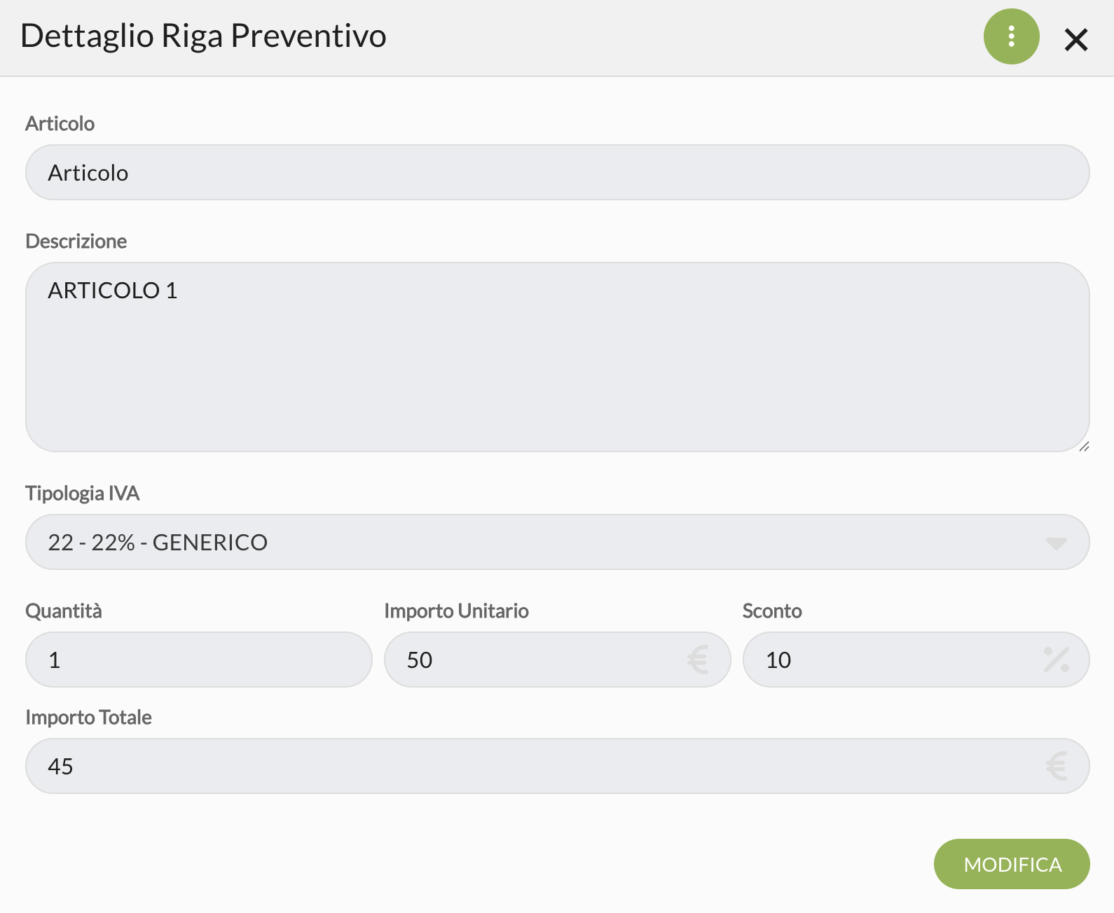 - Numero -> numero progressivo per il preventivo, non modificabile
