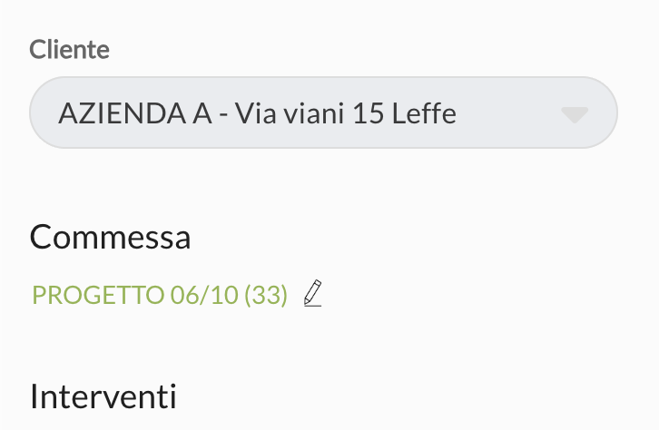 Una volta selezionata la commessa, comparirà all’interno del preventivo la voce della commessa: