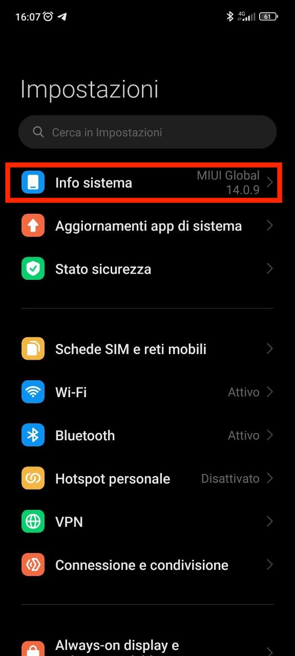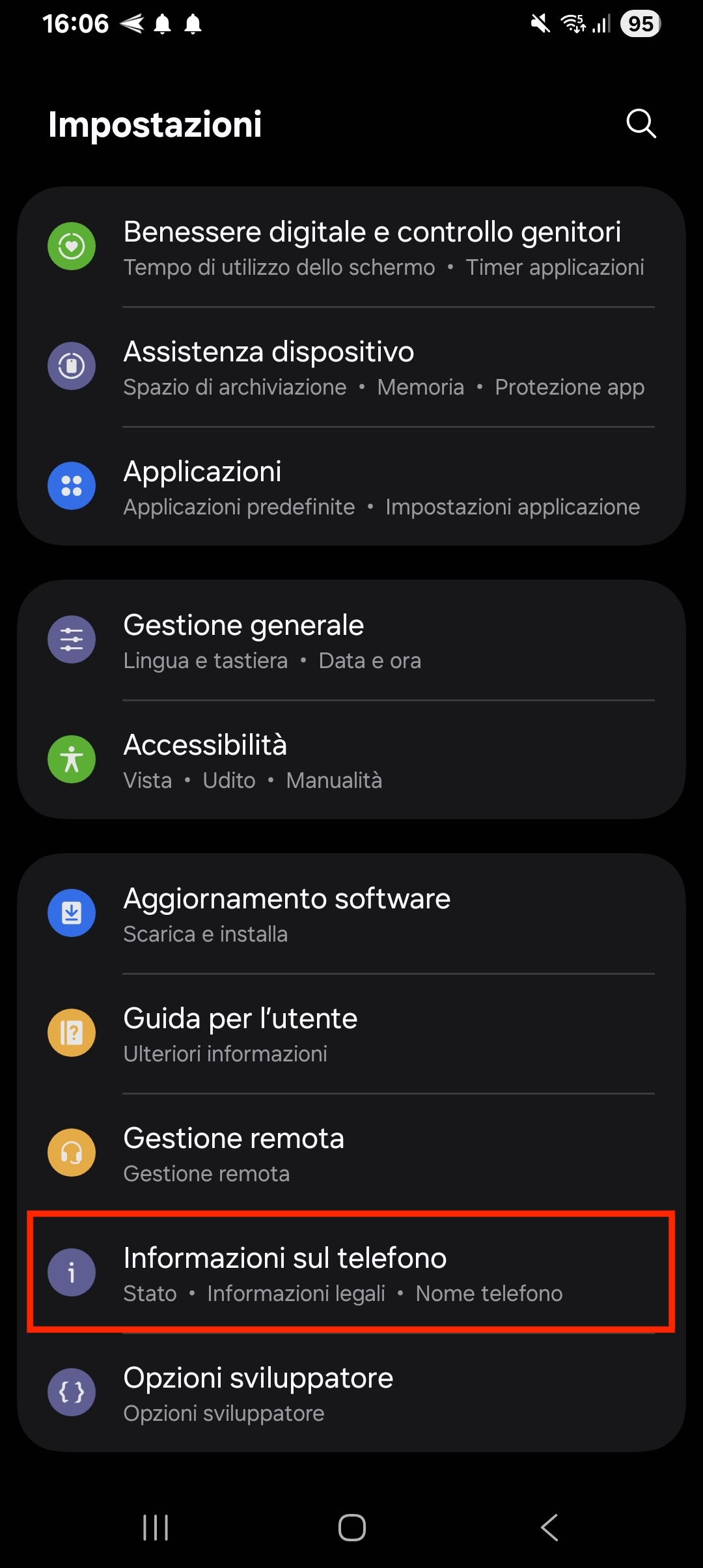 Cercare la voce INFORMAZIONI SUL TELEFONO e accedere: