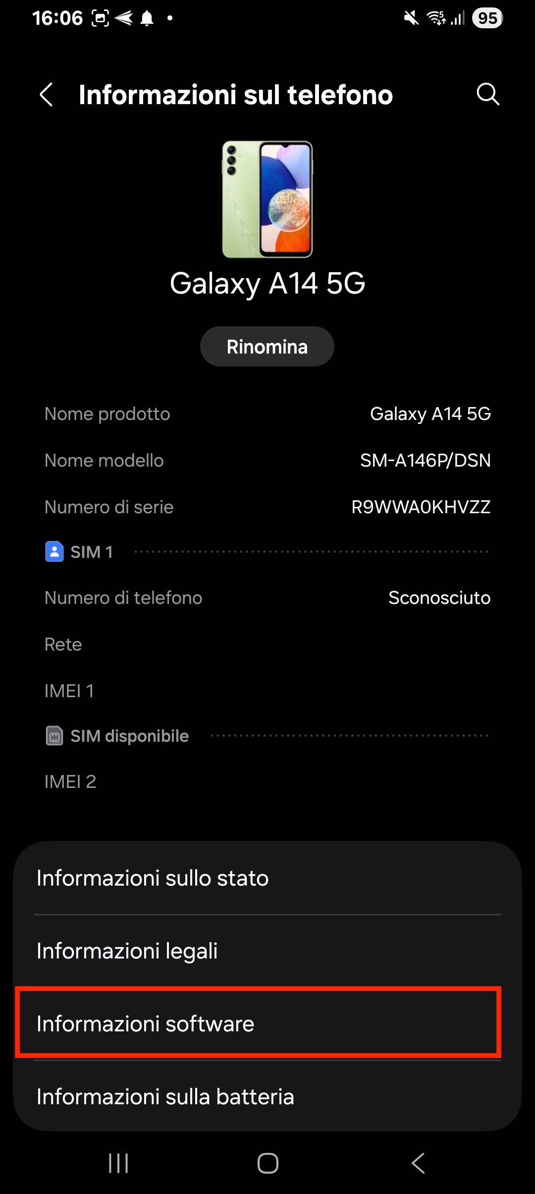 Sempre da qui però è necessario andare su INFORMAZIONI SOFTWARE: