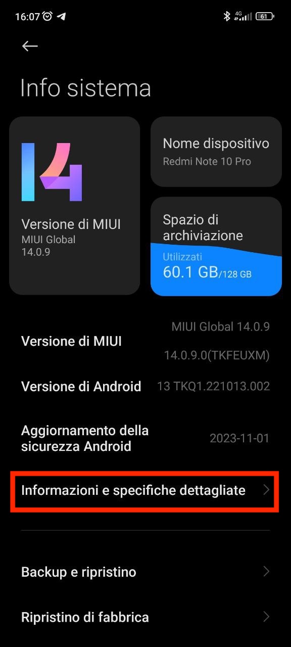 Sempre da qui però è necessario andare su INFORMAZIONI E SPECIFICHE DETTAGLIATE: