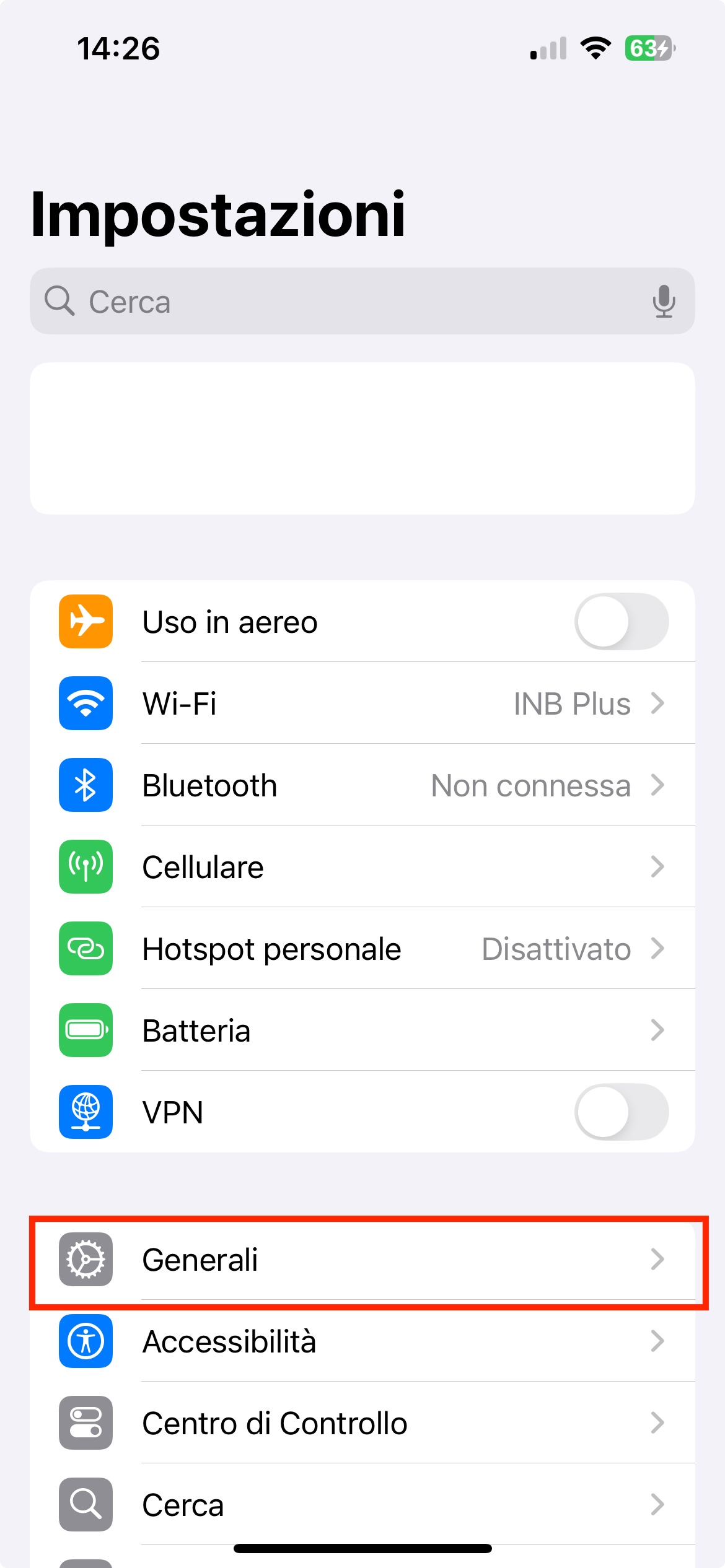 Accedere alle impostazioni del proprio dispositivo.
