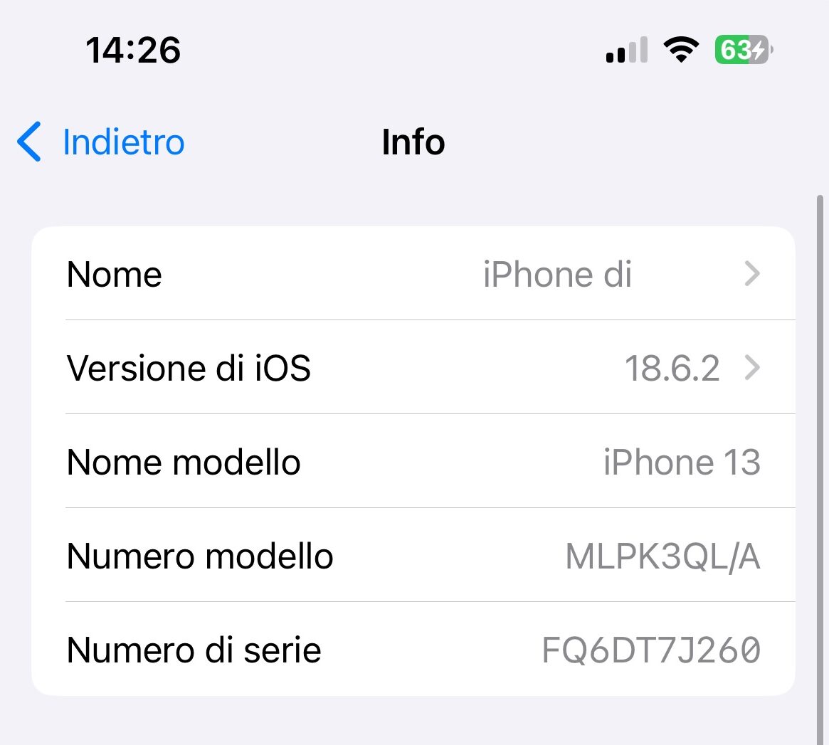 Informazioni dispositivi iOS